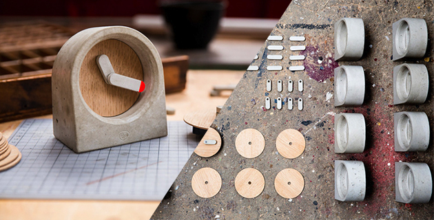 The lovely PS Studio, based in Netherlands, play with concrete and time in their new design project. Starting with a full and strong shape, but simple at the same time, they create Moak Clock: the perfect mix between heavy soul of concrete, wooden circle and a little touch of color.